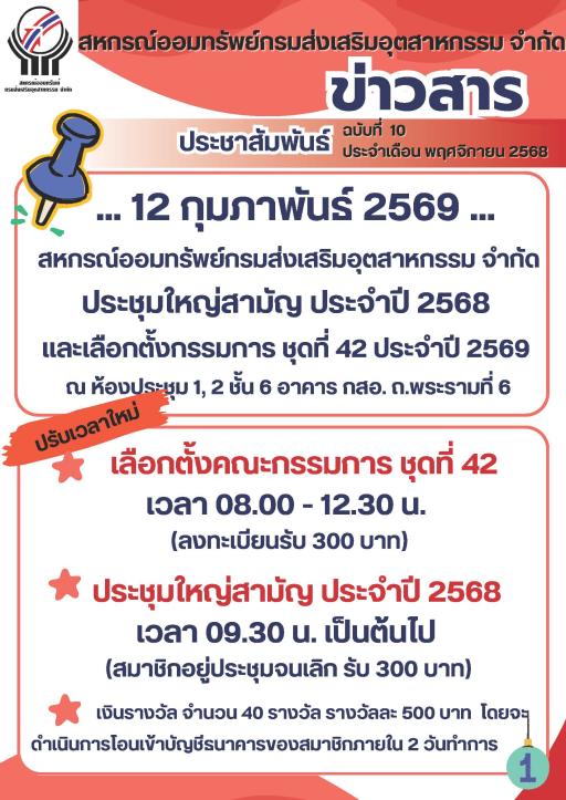 ประชาสัมพันธ์ประกาศสหกรณ์ เรื่อง กำหนดวันประชุมใหญ่สามัญ ประจำปี 2568