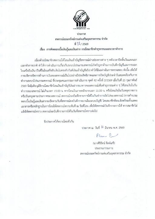 ปชส.การคิดดอกเบี้ยเงินกู้และเงินฝากกรณีสมาชิกทำธุรกรรมนอกเวลาทำการ