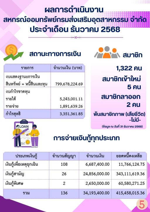 ผลการดำเนินงานประจำเดือน ธันวาคม 2568