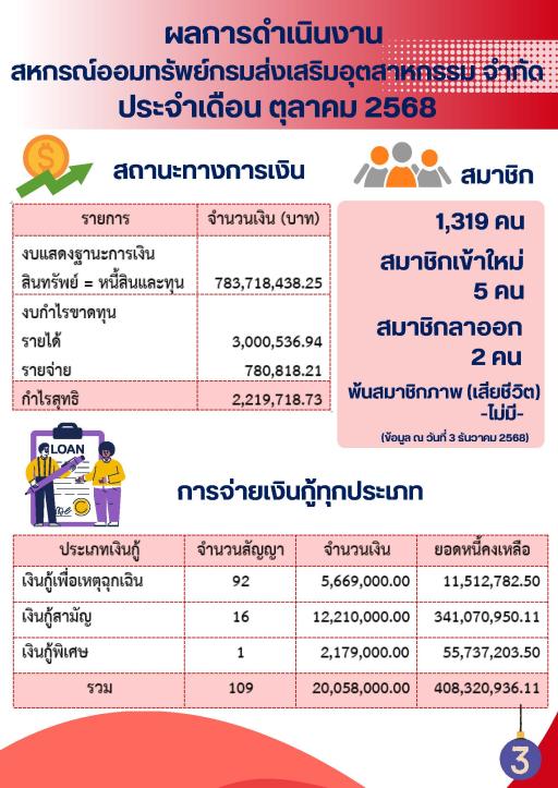 ผลการดำเนินงานประจำเดือน ตุลาคม 2568