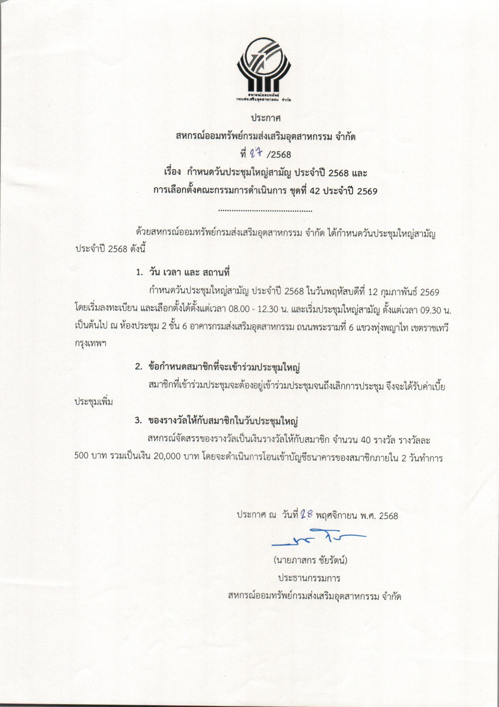 ประชาสัมพันธ์ประกาศสหกรณ์ เรื่อง กำหนดวันประชุมใหญ่สามัญ ประจำปี 2568