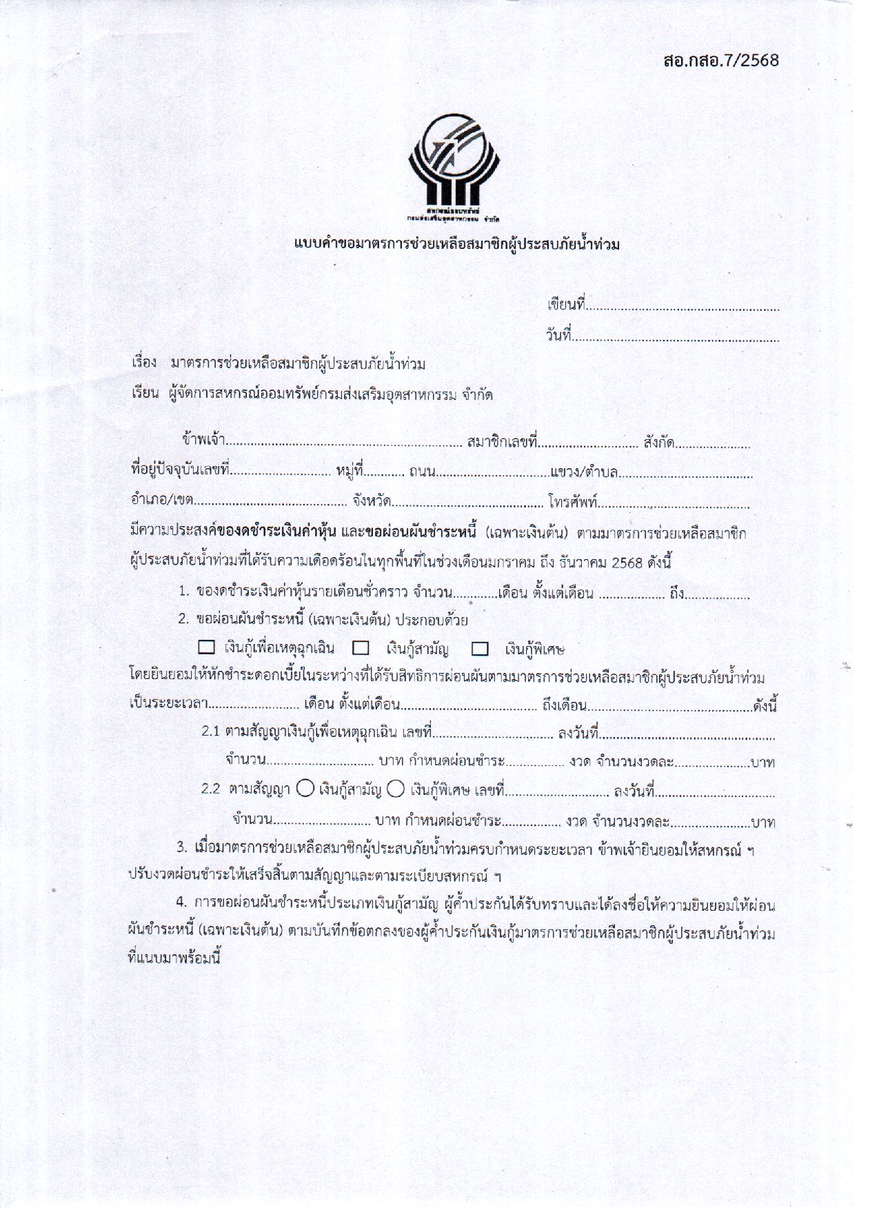 ปชส.ประกาศสหกรณ์ เรื่อง มาตรการช่วยเหลือสมาชิกผู้ประสบภัยน้ำท่วม