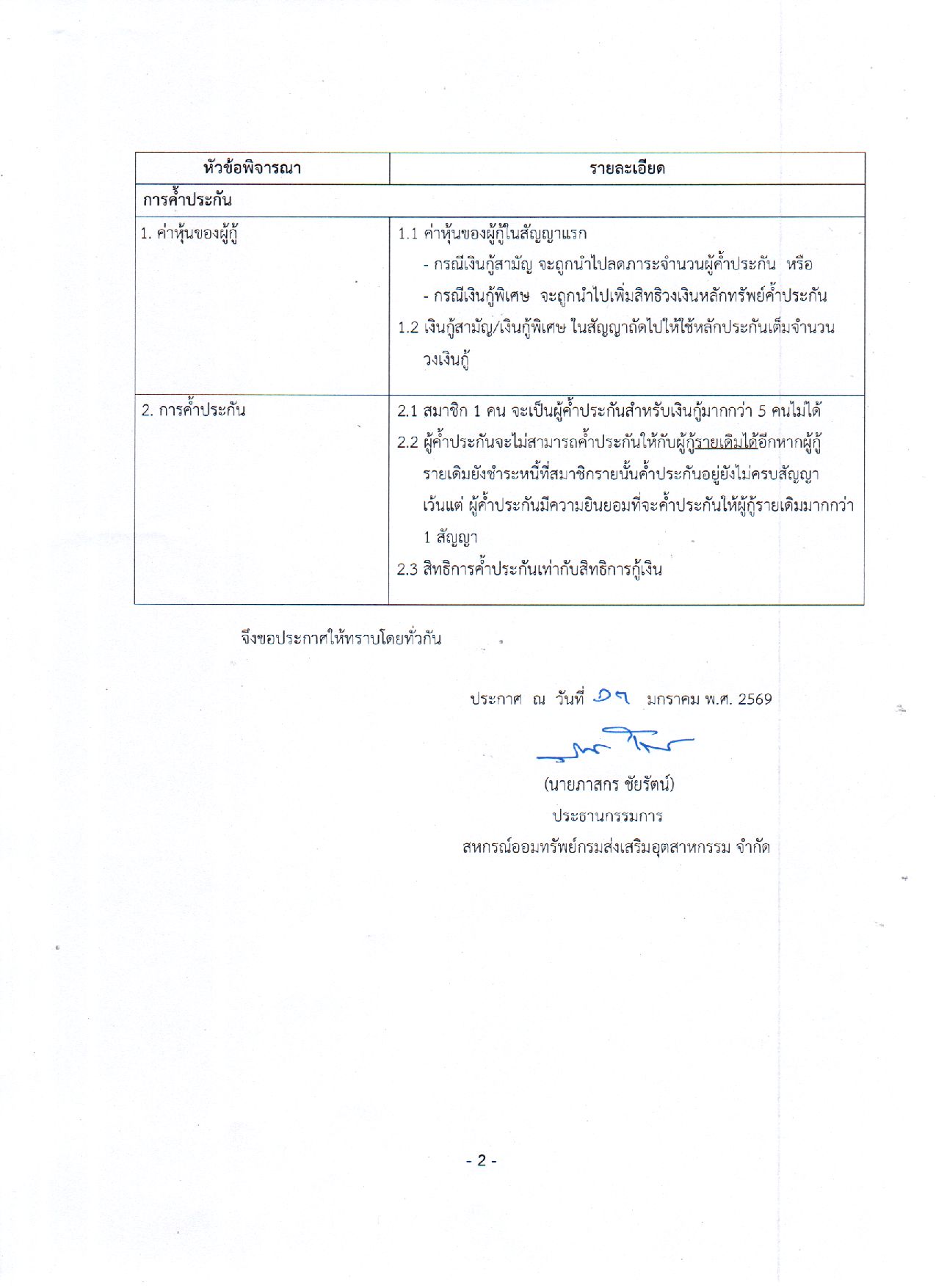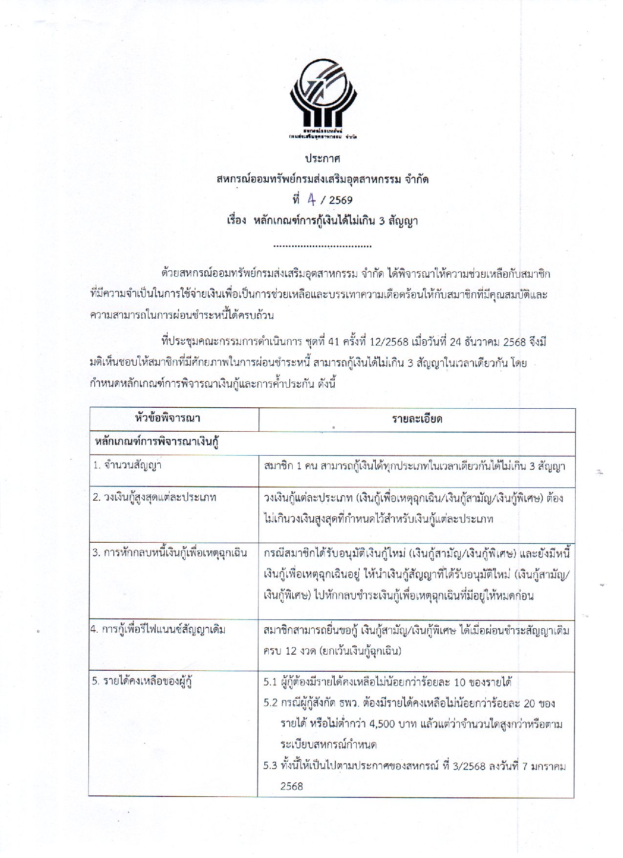 ประชาสัมพันธ์ประกาศสหกรณ์ เรื่อง หลักเกณฑ์การกู้เงินได้ไม่เกิน 3 สัญญา