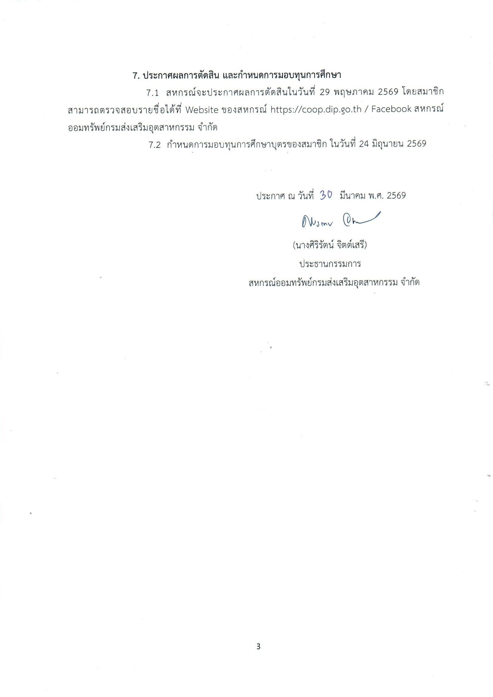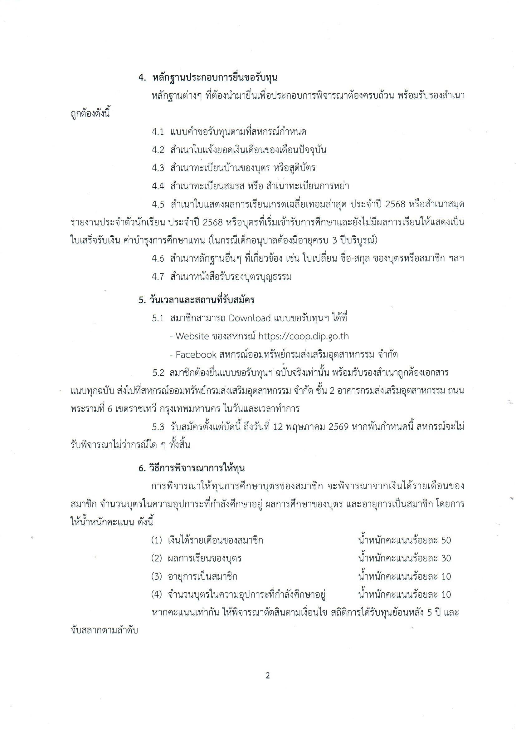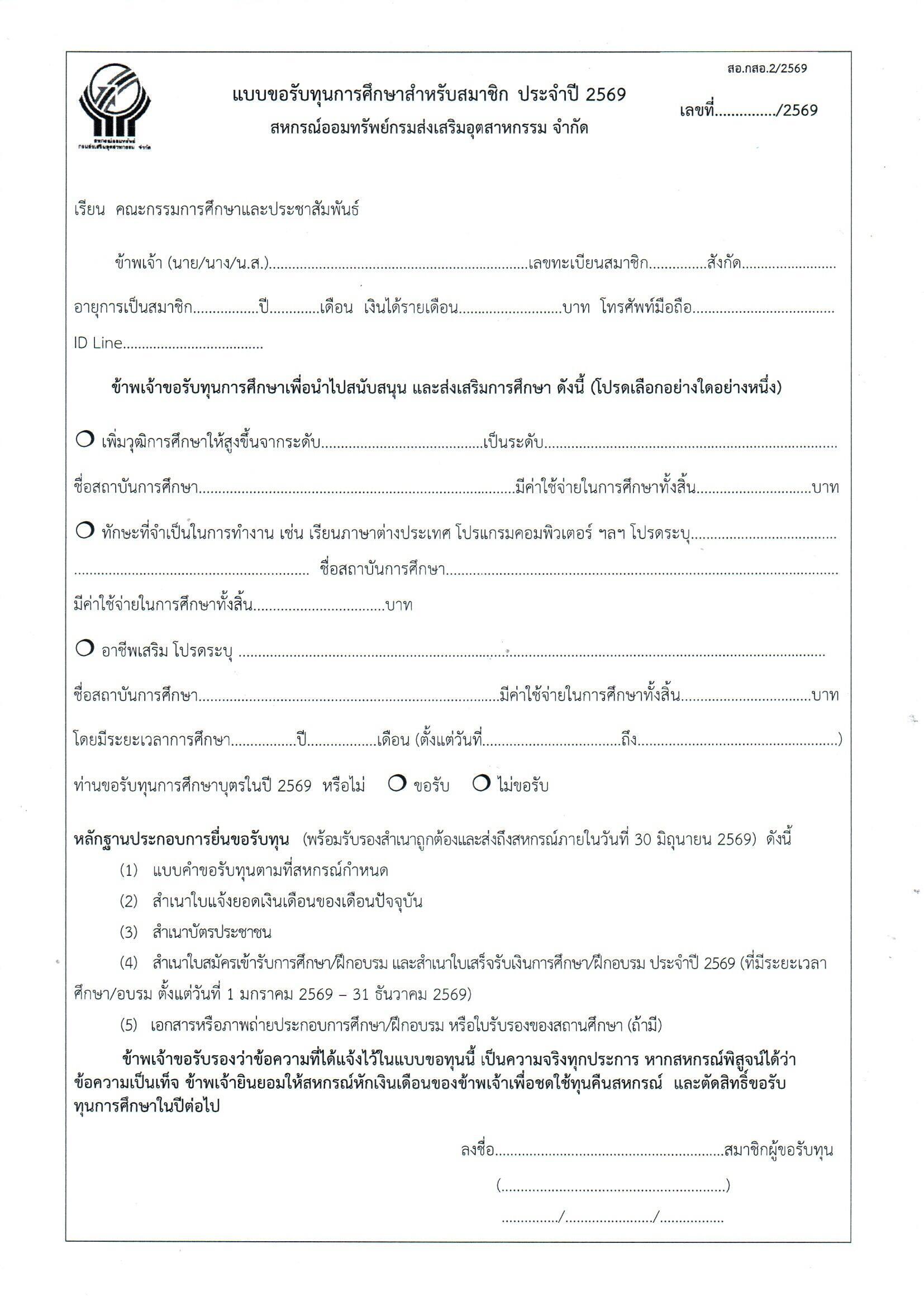 ประชาสัมพันธ์ประกาศการให้ทุนการศึกษาสำหรับสมาชิกสหกรณ์ และทุนการศึกษาบุตรของสมาชิกสหกรณ์ ประจำปี 2569